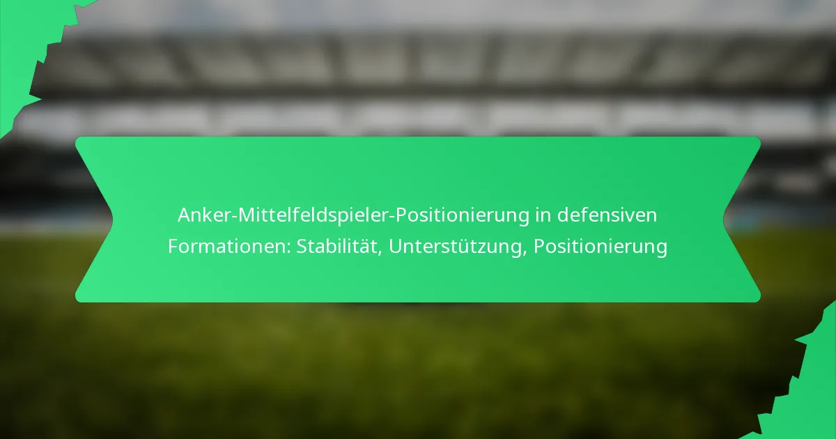 Effektive Positionierungsstrategien für Abräumer im Mittelfeld konzentrieren sich auf die Aufrechterhaltung der defensiven Stabilität und die Bereitstellung von Unterstützung für Teamkollegen. Diese Strategien beinhalten das Verständnis von Formationsprinzipien, die Anpassung an die Taktiken des Gegners und die effiziente Nutzung von Raum, um Angriffe zu vereiteln.