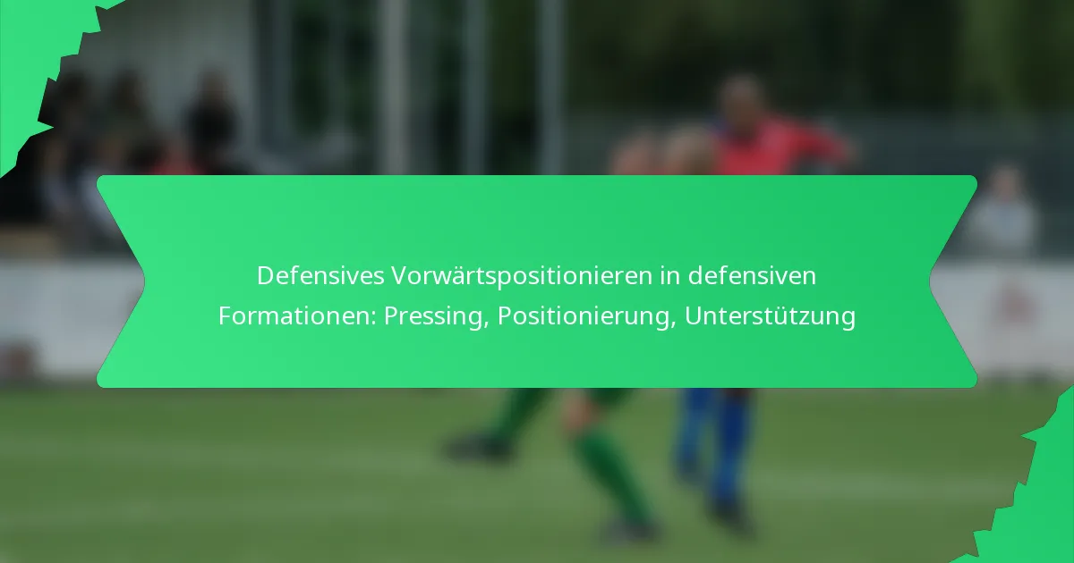 Die defensive Vorwärtspositionierung ist entscheidend, um den Angriff eines Gegners zu stören und gleichzeitig das defensive Gerüst eines Teams zu stärken. Durch die strategische Platzierung von Spielern in der Angriffsreihe können Teams Druck ausüben, den Ballbesitz zurückgewinnen und ihre Formation beibehalten. Effektive Pressing-Taktiken und Positionierungstechniken verbessern die defensive Effektivität, indem sie es den Spielern ermöglichen, Bewegungen vorherzusehen und effektiv mit ihren Mitspielern zu kommunizieren.