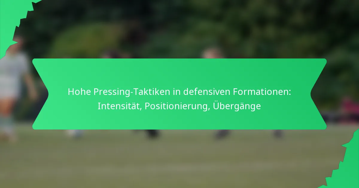 Die Hochpressing-Taktiken in defensiven Formationen konzentrieren sich darauf, den Gegner hoch auf dem Spielfeld unter intensiven Druck zu setzen, um deren Aufbauspiel zu stören und schnell den Ball zurückzugewinnen. Diese Strategie beruht auf der Positionierung und Koordination der Spieler, um Ballverluste zu erzwingen, und betont die Bedeutung von Kompaktheit und Wachsamkeit. Die Effektivität dieser Taktiken wird erheblich durch die Intensität beeinflusst, mit der die Spieler agieren, was sich auf ihre Fähigkeit auswirkt, während des Spiels schnell zu wechseln.